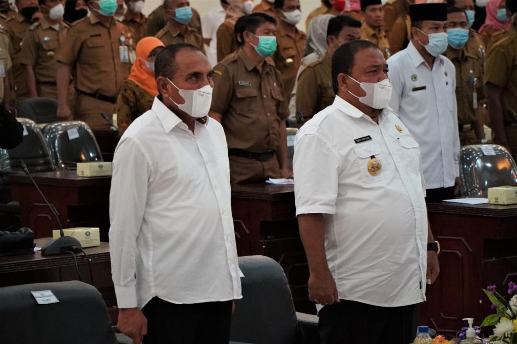 Sementara Gubsu Edy Rahmayadi menyampaikan pentingnya kolaborasi antara eksekutif, legislatif, dan yudikatif dalam menjalankan amanah pembangunan, yang dapat dikoordinir oleh pimpinan Forkopimda yaitu Bupati.