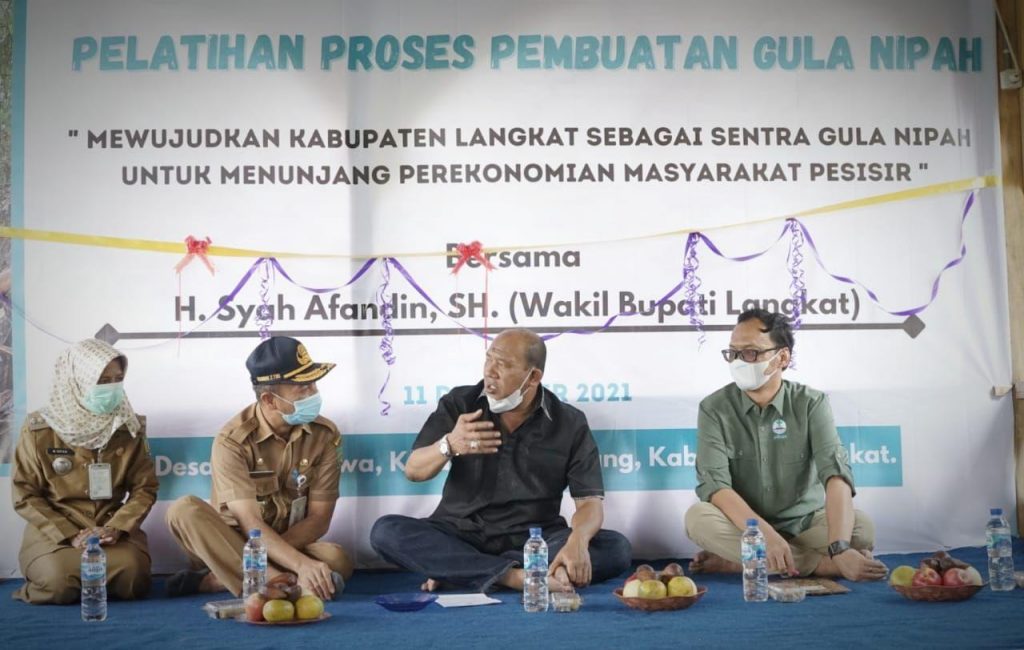 BBSNews.id – Langkat – Yayasan Konservasi Pesisir Indonesia (Yakopi) gelar Pelatihan Gula Nipah yang secara resmi dibuka oleh Wakil Bupati Langkat H Syah Afandin,SH di Desa Pasar Rawa Kecamatan Gebang, Langkat, Selasa (14/12/2021).