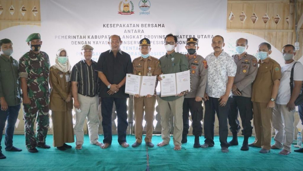 Acara dirangkai penandatanganan kesepakatan (MoU) antara Pemkab Langkat dengan Yakopi ,tentang pelaksanaan restorasi ekosistem pesisir dan pemberdayaan masyarakat Pesisir di Kabupaten Langkat.(BB–2)