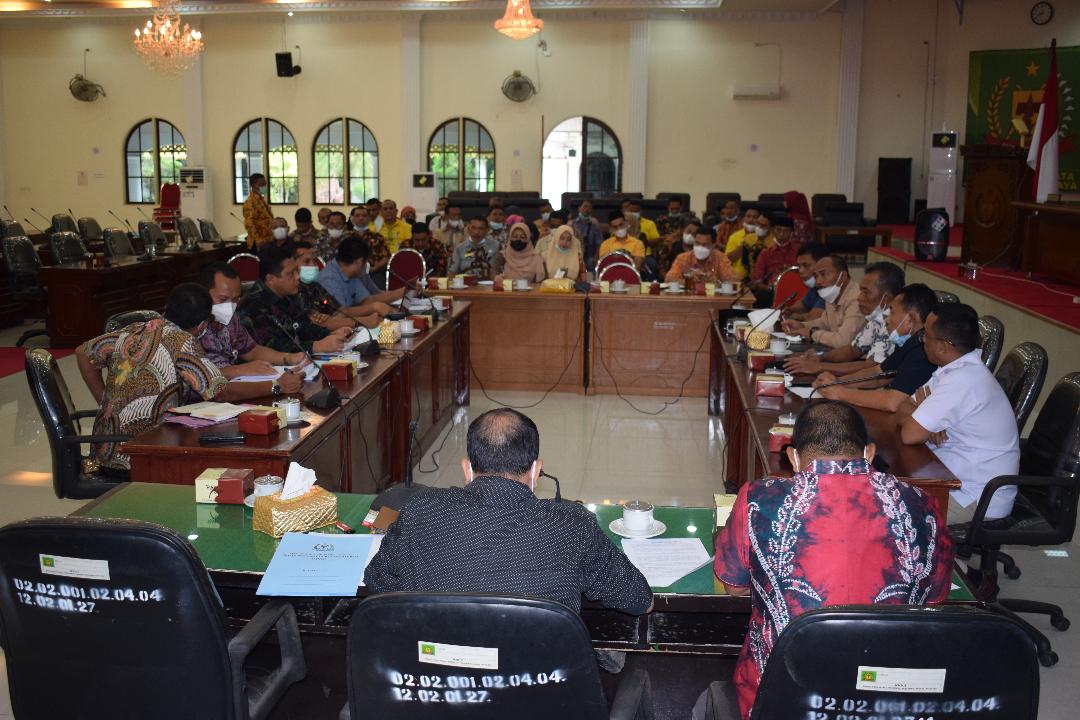RDP :  Komisi A DPRD Langkat memimpin RDP  membahas agenda tahapan penyelenggaraan Pilkades Serentak di ruang rapat paripurna DPRD dihadiri perwakilan Kadis PMD, Kadis  Dukcatpil, Kabag Hukum , para Camat dan  Ketua Apdesi Kecamatan, Kamis (6/1). (Foto Sekwan DPRD Lkt)