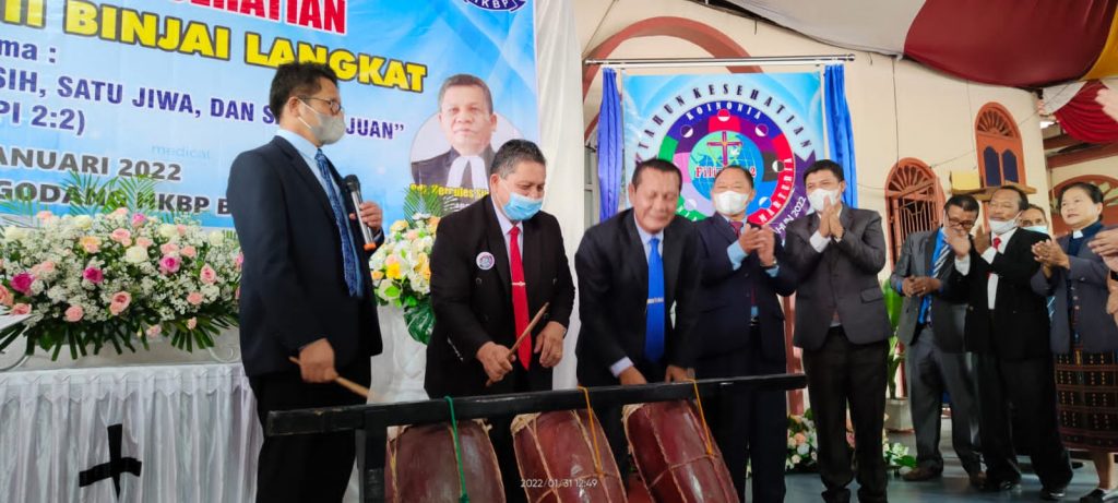 BBSNews.id – Binjai – HKBP Distrik XXIII Binjai-Langkat melaksanakan Syukuran Awal tahun 2022 dan Launching Tahun Kesehatian HKBP Distrik XXIII Binjai-Langkat, Senin (31/1/2022) sekira Pukul 10.30 WIB.Syukuran diawali Ibadah dipimpin oleh Pdt. Hendra Victor Lumbantobing, M.Si. (pendeta HKBP Resort Binjai) sebagai liturgis, Pdt. Manotas Simamora, S.Th (Anggota MPSD) sebagai pendoa syafaat, dan Kepala Departemen Koinonia, Pdt. Dr. Deonal Sinaga, sebagai pengkhotbah.
