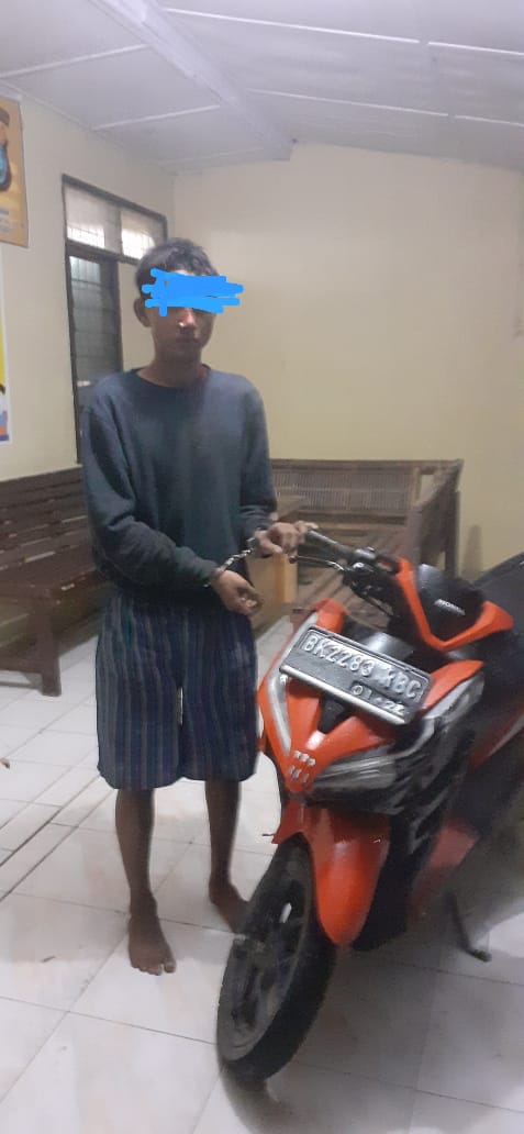 Selanjutnya petugas melakukan penyelidikan dan menuju lokasi yang dimkasud dan tidak lama menemukan DZ yang mengendarai sepeda motor Vario warna merah yang dicurigai itu dan menangkapnya. Pelaku mengaku sepeda motor itu dicurinya .
