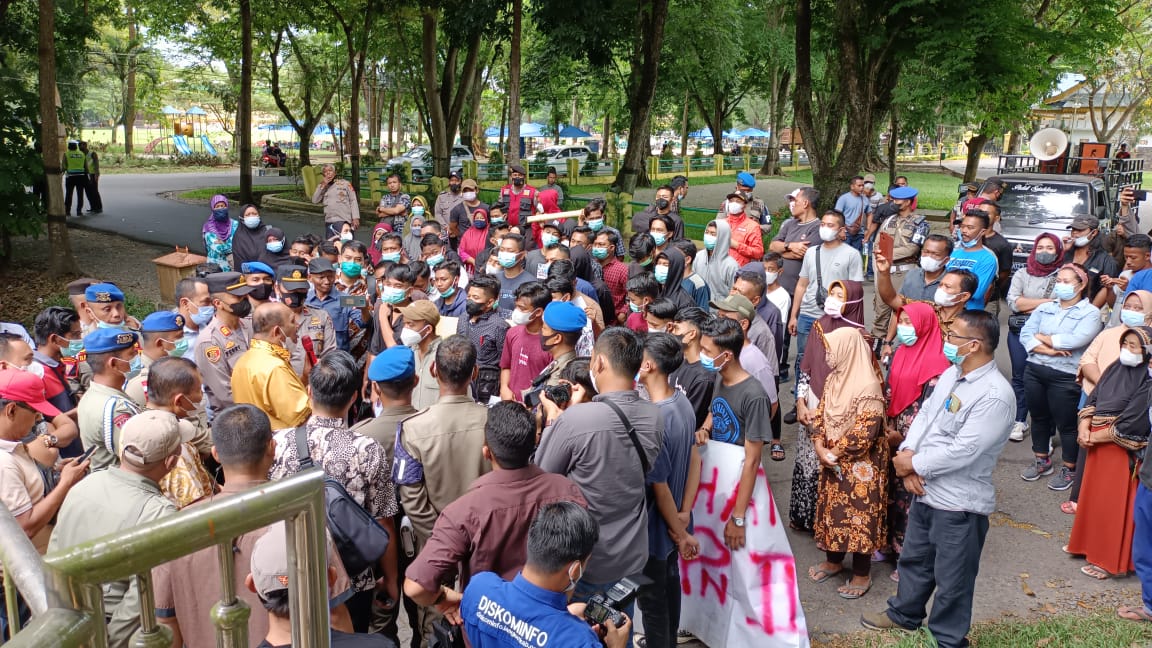 Usai mendengar penjelasan Ondim , sapaan akrab plt Bupati itu, pengunjukrasa akhirnya dapat menerima dan mereka membubarkan diri dengan tertib. (BB-3).