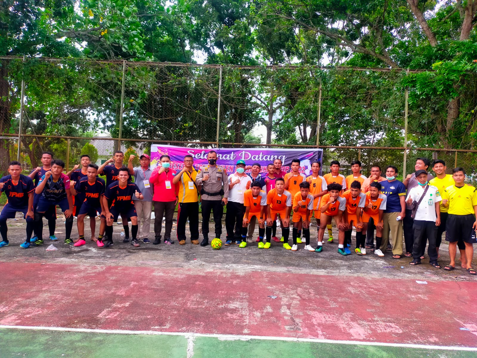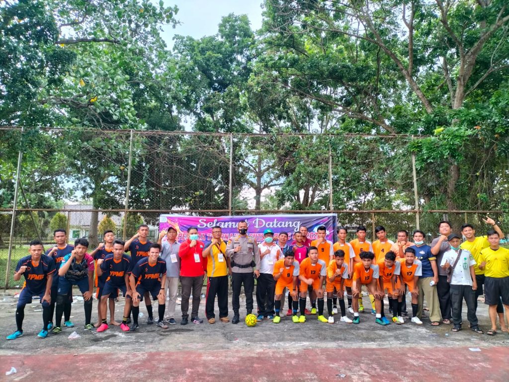 Berfoto Bersama : Panitia Paskah Oikumene dan BKAG Langkat berfoto bersama Kapolsek Pangkalan Brandan AKP Bram Chandra serta Tim Futsal di Gedung Futsal PT Pertamina Pangkalan Berandan, Jumat (6/5/2022). (Foto BKAG Lkt)