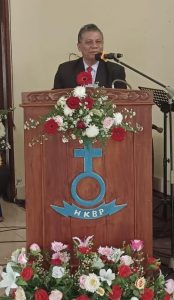 Praeses 23 Binjai Langkat : Praeses Distrik XXIII Binjai Langkat Pdt Hercules Sihotang MTh saat pembukaan 1 Festival Koor Ina / Parompuan HKBP Distrik XXIII Binjai – Langkat dalam rangka Tahun Kesehatian HKBP 2022 yang diadakan di Gereja HKBP Stabat Resort Stabat Jalan Sempurna No 84 Kota Stabat, Sabtu (1/10/2022). ( Foto BBSNews.id / Sufrab)