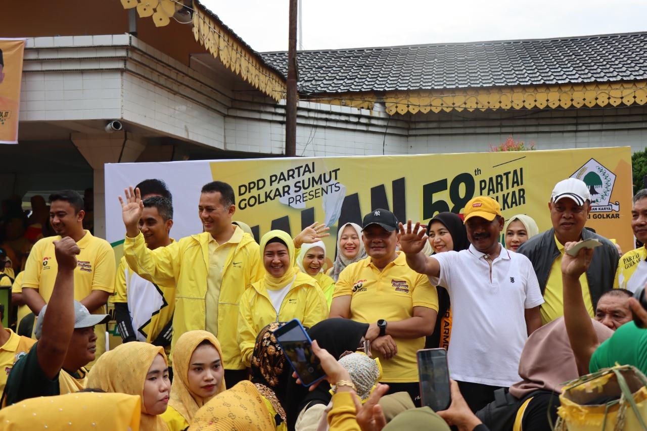 Selain jalan santai, peringatan HUT Partai Golkar ini dimeriahkan pula dengan ragam kegiatan lain seperti donor darah, senam, hiburan musik, door prize, serta stan UMKM Kota Binjai.