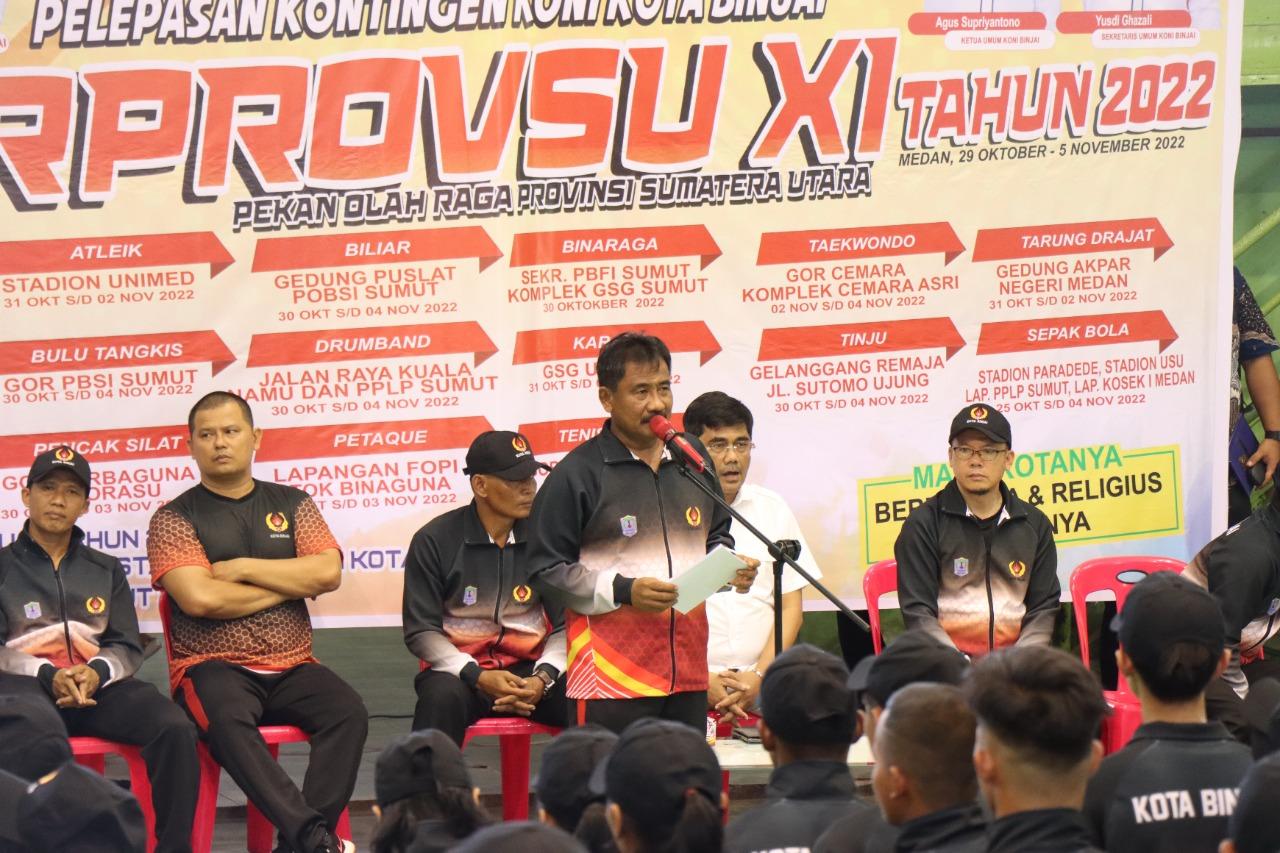 BBSNews.id – Binjai – Wali Kota Binjai Drs. H. Amir Hamzah, M.AP melepas kontingen atlet dari Kota Binjai pada Pekan Olahraga Provinsi (Porprov) Sumatera Utara ke XI Tahun 2022 yang akan berlangsung di Kota Medan pada 29 Oktober – 5 November 2022.
