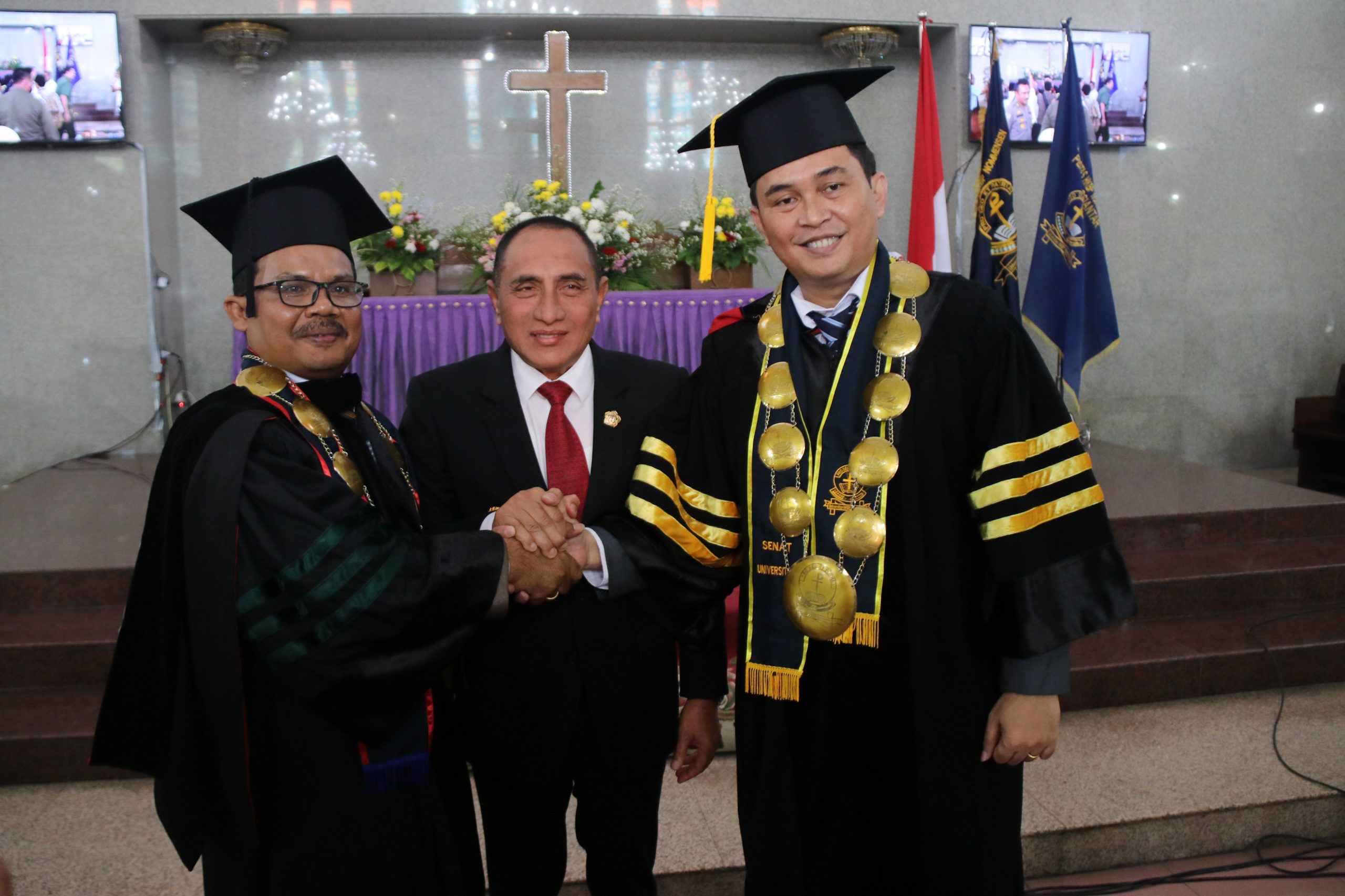 Demikian kata Gubernur dalam sambutannya pada acara Pelantikan Rektor Universitas HKBP Nommensen Medan Richard AM Napiutupulu dan HKBP Nommensen Pematangsiantar Muktar B Panjaitan di Gereja HKBP Sudirman, Jalan Jenderal Sudirman, Rabu (5/4/2023). Hadir di antaranya Ephorus HKBP Pdt Robinson Butarbutar serta para pimpinan HKBP.