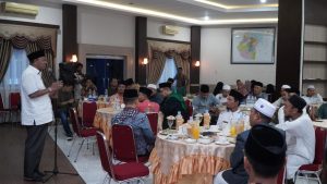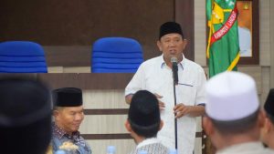 Selanjutnya, Syah Afandin menyampaikan agar kiranya pondok pesantren yang belum terdaftar supaya diurus secara resmi pesantrennya. “Saya tak berani mengupas tentang hal agama karena di sini sudah gudangnya berkumpul yang paham tentang agama. Hari ini saya merasa bahagia kali semalam saya mengumpulkan para Al-Ma’un itu di Kuala 500 orang lebih di masjid yang di simpang duren muluk, hari ini 500 lebih juga saya tempatkan di Pendopo,” sebutnya.