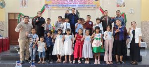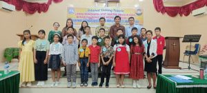 Pemenang Lomba Kotbah Anak/ Cilik berfoto bersama Tim Juri pada Lomba Kotbah Anak diadakan di Gereja Kristen Muria Indonesia (GKMI) Aletheia Kuala Jumat (28/4/2023). (Foto BBSNews.id/ Sufrab )