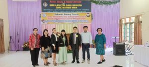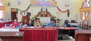 Rapat Panitia : Panitia Paskah Oikumene Langkat menggelar rapat dihadiri Ketua Umum Panitia Paskah Oikumene Langkat 2023, Edi Bahagia, Sinuraya, SIP, Ketua I ,Pdt Desy Boru Hutasoit Sekretaris Pdt Sahata Manurung, MTh dan Bendahara Erika Pakpahan serta Ketua BKAG Langkat Pdt Rudy Butar Butar, MMis di HKBP Kuala, Jumat (28/4/2023). (Foto BBSNews.id/ Sufrab )