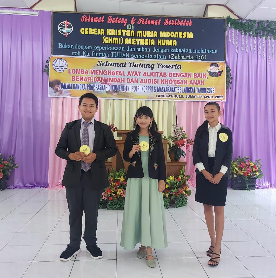 Untuk pemenang sebagai Juara I, Jonathan Sinulingga (GMII Filadelfia Mau Munci) , Juara II Juliana Grace Desland Saragih (HKBP Resort Stabat) dan Juara III, Gabriella Br Situmorang (GPdi Salem Securai).