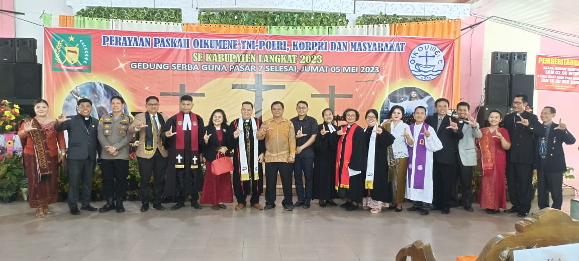 BBSNews.id – Langkat – Perayaan Paskah Oikumene TNI/ Polri dan KORPRI dan Masyarakat Kabupaten Langkat Tahun 2023 diikuti prosesi Jalan Salib (via Dolorosa) di Gedung Serba Guna Pasar 7 Padang Brahrang Kecamatan Selesai, Kabupaten Langkat, Jumat (5/5/2023).