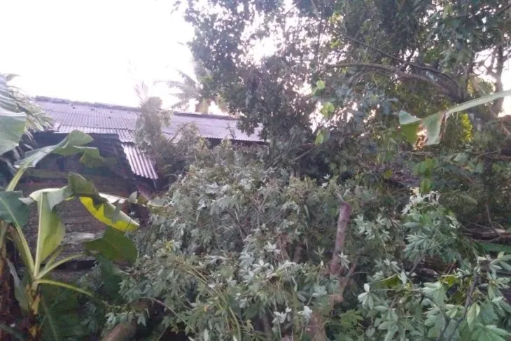 Berdasarakan data , peristwa hujan disertai angin kencang terjadi Kamis (25/5/2023) sekira Pukul 18.20 WIB, yang disertai hujan deras dan angin kencang yang mengakibatkan pohon tumbang, tiang listrik tumbang, atap rumah/seng terlepas /terbang dan kandang ternak tumbang.