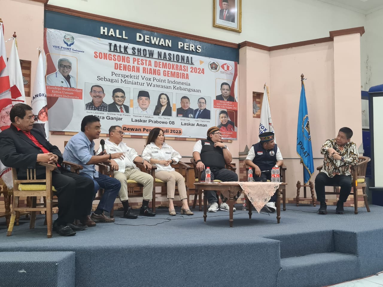 Talk Show Nasional terkait Pilpres 2024 ini diselenggarakan oleh Vox Point Indonesia bekerja sama dengan Masyarakat dan Pers Pemantau Pemilu (Mappilu) PWI Pusat.