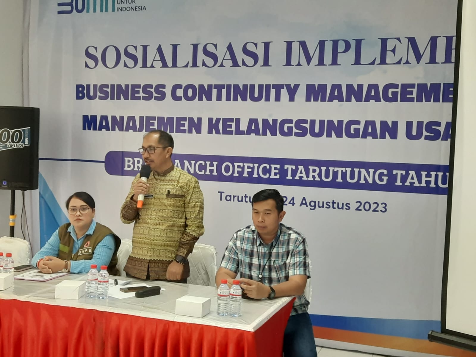 BBSNews.id – Tarutung – Bank Rakyat Indonesia (BRI) Branch Office Tarutung menggelar sosialisasi implementasi busines continuity managemen, dalam kaitan managemen kelangsungan usaha.