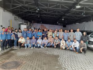 Pemimpin Cabang BRI Tarutung Hendro, Pemimpin Cabang Pembantu Surya Utama, Hendra Simangunsong dan MBM Frengky MP Sianturi dan Edward Manullang serta para staf bersama Sekretaris BPBD Taput Ir Jonner Simanjuntak dan Satuan Pemadam Kebakaran Tapanuli Utara, usai simulasi di Tarutung baru baru ini. (Foto Dok/ Ist).