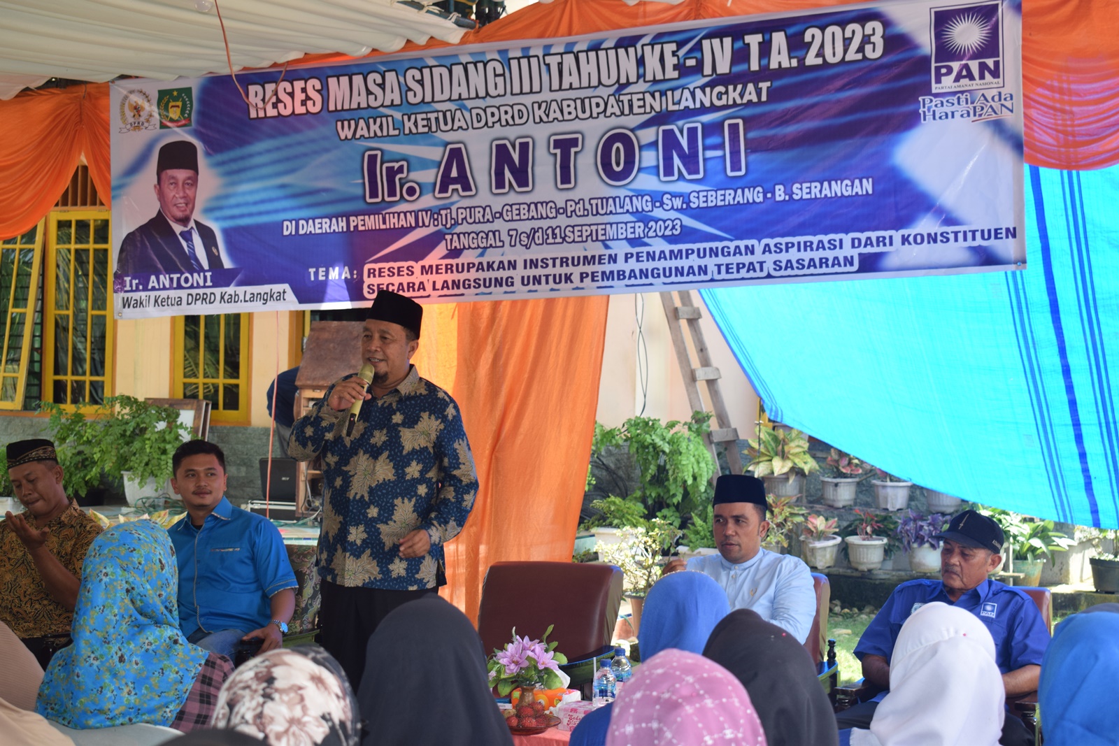 “Banyak perhatian dari bapak Antoni terhadap desa ini, banyak usulan pembangunan yang pak Antoni perjuangkan dan berhasil, kinerja pak Antoni sebagai anggota DPRD Langkat sudah tidak diragukan lagi,” ungkap Kepala Desa sembari disambut tepuk tangan warga yang hadir.