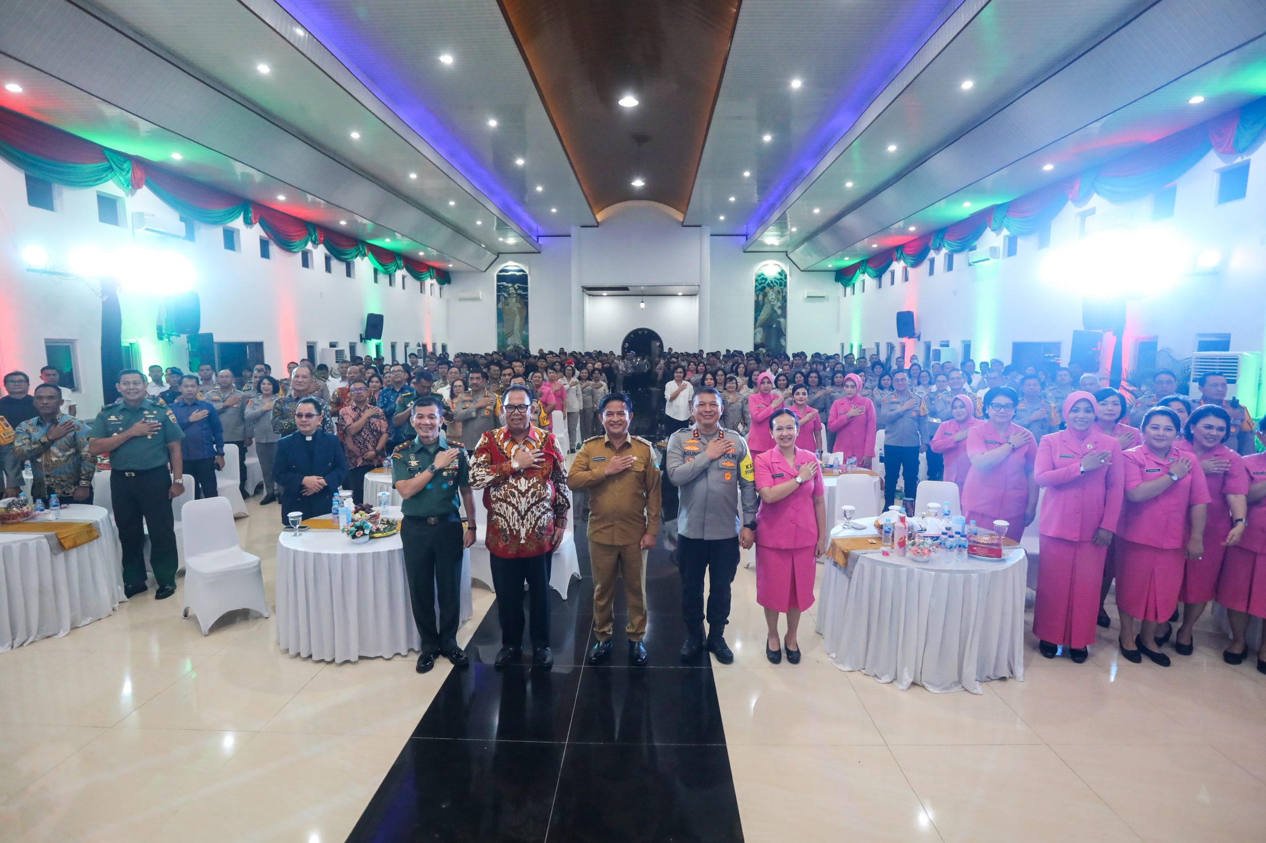 NATAL dan TAHUN BARU: Kapolda bersama Forkopimda Sumut dan personel menghadiri Natal 2023 dan Tahun 2024 bertempat di halaman belakang Mapoldasu, Senin (15/1/2024) malam.(Foto dok/Polda Sumut