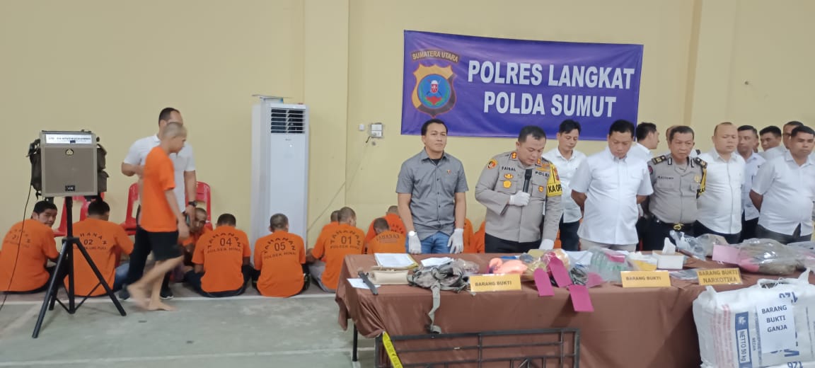 Sementara itu Kapolres Langkat AKBP Faisal Rahmat. HS, SIK. SH. MH menyebutkan penangkapan terhadap tersangka kasus narkoba jenis daun ganja kering sebanyak 30,7 Kg yang dibungkus dengan karung berwarna putih di SPBU Kampung Lalang Kecamatan Besitang Kabupaten Langkat dengan tersangka sebanyak 3 (tiga) orang berinisial MS(39) warga Aceh, SR(28) warga Aceh dan DH warga Kota Pekanbaru.