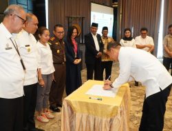 Selanjutnya Pj Bupati Langkat H. M. Faisal Hasrimy membuka Penandatanganan berita acara Musyawarah Pembangunan RPJPD Kabupaten Langkat tahun 2025-2045.