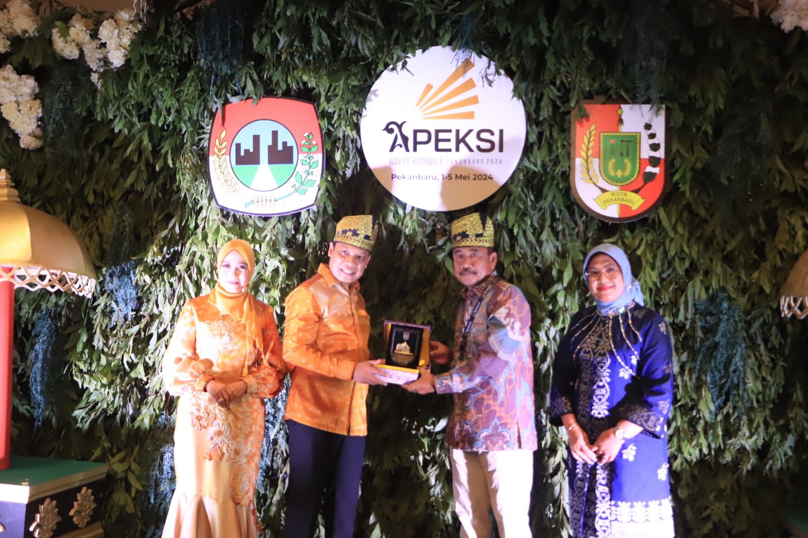 Raker Komwil I Apeksi ini diawali dengan jamuan makan malam di Hotel Pangeran, Kamis malam(2/5). Sebelum memulai jamuan makan malam, Wali Kota Binjai Drs. H. Amir Hamzah, M.AP bersama Ketua Dekranasda Kota Binjai Ny. Nurhayati Amir Hamzah saling menyerahkan cenderamata kepada Pj. Wali Kota Pekanbaru Muflihin beserta Pj. Ketua TP PKK Pekanbaru.