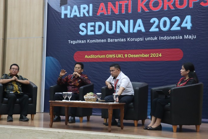 Dia pun melihat akar korupsi salahsatunya budaya instan, tidak peduli dengan proses, serta konsumerisme. “Contoh nyontek, tidak mau mencatat itu juga bagian dari perilaku korupsi,” ujarnya dihadapan dosen dan mahasiswa UKI yang hadir dalam kegiatan ini.