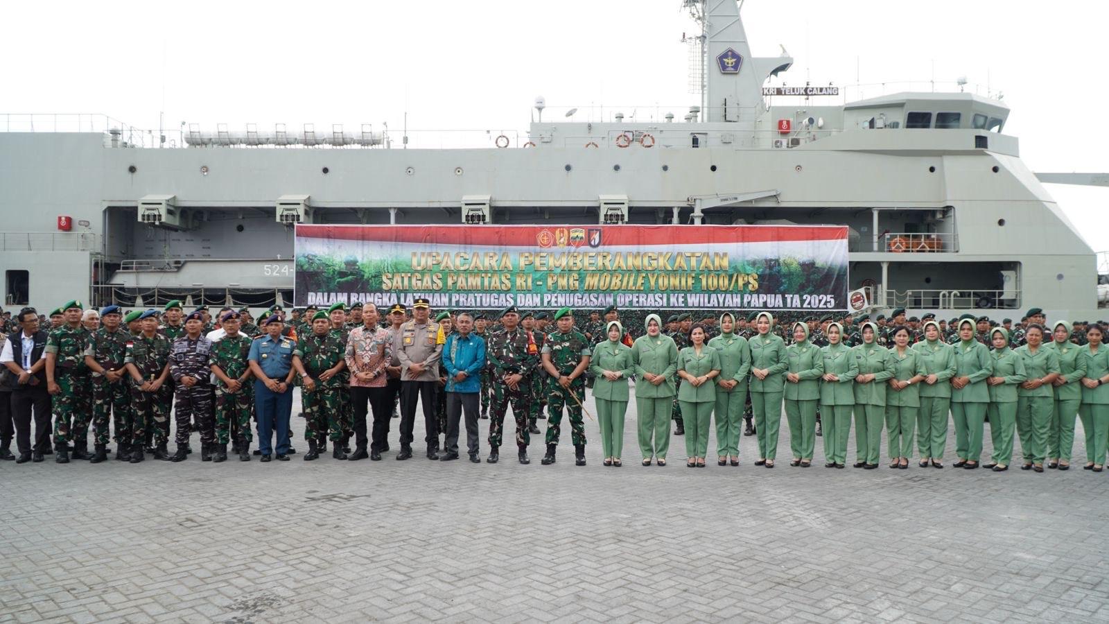 BBSNews.id – Belawan – Sebanyak 450 prajurit Yonif 100/ Prajurit Setia Namu Sira-sira Namu Ukur Utara,Sei Bingai,Langkat, Sumut dilepas untuk diberangkatkan sebagai Satgas Pengamanan Perbatasan (Pamtas) RI-PNG Mobile Yonif 100/PS. Upacara digelar di Dermaga Ujung 200 Belawan, Kamis (13/2/2025), sebagai bagian dari persiapan penugasan operasi di wilayah Papua Tahun Anggaran 2025