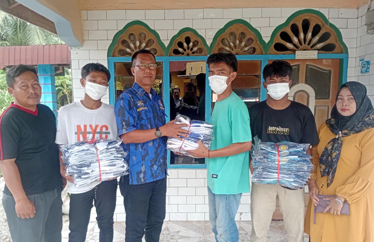 SERAHKAN: Pimpinan DPRD Sulut, Ricky Anthony (RA) melalui Tim Komando Pemenangan Ricky Anthony Langkat (KOPRAL) menyerahkan seragam sepak bola kepada pengurus klub 2 kecamatan, Minggu (10/8). Yakni tiga set seragam 3 set di Desa Telaga Jernih, Kecamatan Secanggang dan 3 set lagi di Desa Jati Sari, Kecamatan Padang Tualang, dan Foto dok/Kopral).