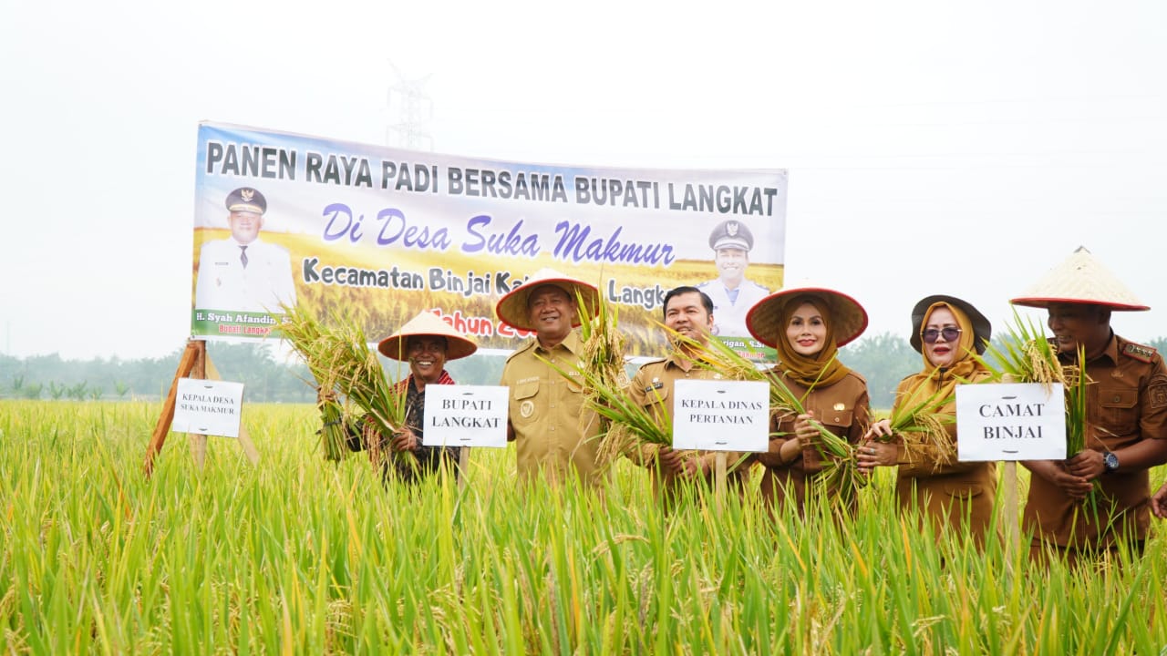 PANEN RAYA: Bupati Langkat H. Syah Afandin, SH menghadiri syukuran hasil panen raya sekaligus meresmikan Kilang Padi Sukma Jaya dalam rangka perayaan Hari Ulang Tahun (HUT) ke-29 Desa Suka Makmur, Kecamatan Binjai, Senin (8/9/2025).(Foto dok/Ist).